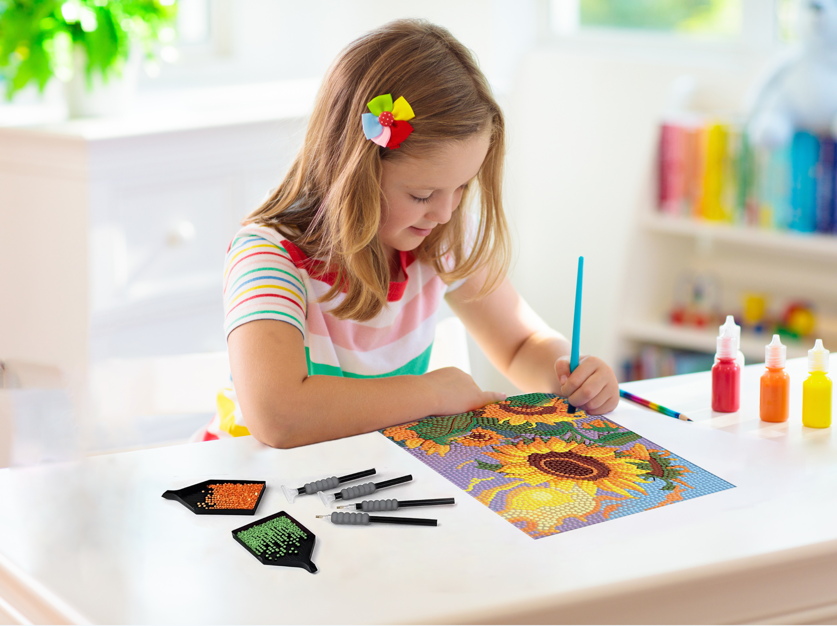 Das Diamantbilder-Set bietet deinem Kind stundenlangen kreativen Spaß, bei dem gleichzeitig die kognitiven Fähigkeiten gefördert werden.