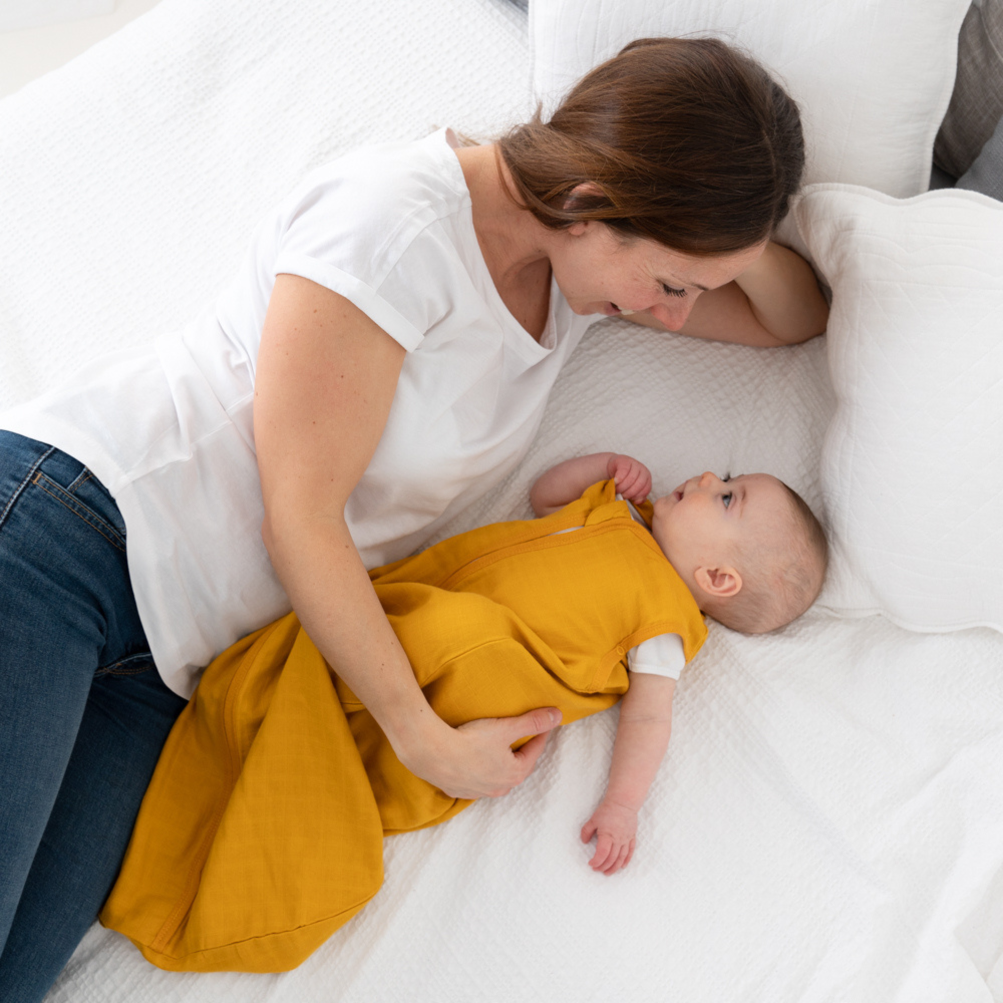 Mit unserem luftigen Sommerschlafsack schläft dein Baby nicht nur schneller ein, sondern auch durch. Der kühlende Effekt des Musselinstoffs trägt dazu bei, dass dein Baby sich auch an heißen Sommernächten wohlfühlt. Dank des leichtgewichtigen Designs bietet der Schlafsack deinem Baby ein angenehmes Gefühl von Sicherheit und Komfort. Ähnlich wie in deinen Armen gehalten zu werden. Diese verbesserte Schlafqualität trägt zur gesunden Entwicklung deines Babys bei.