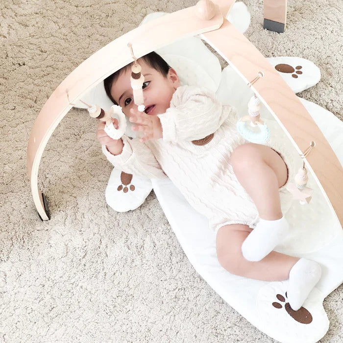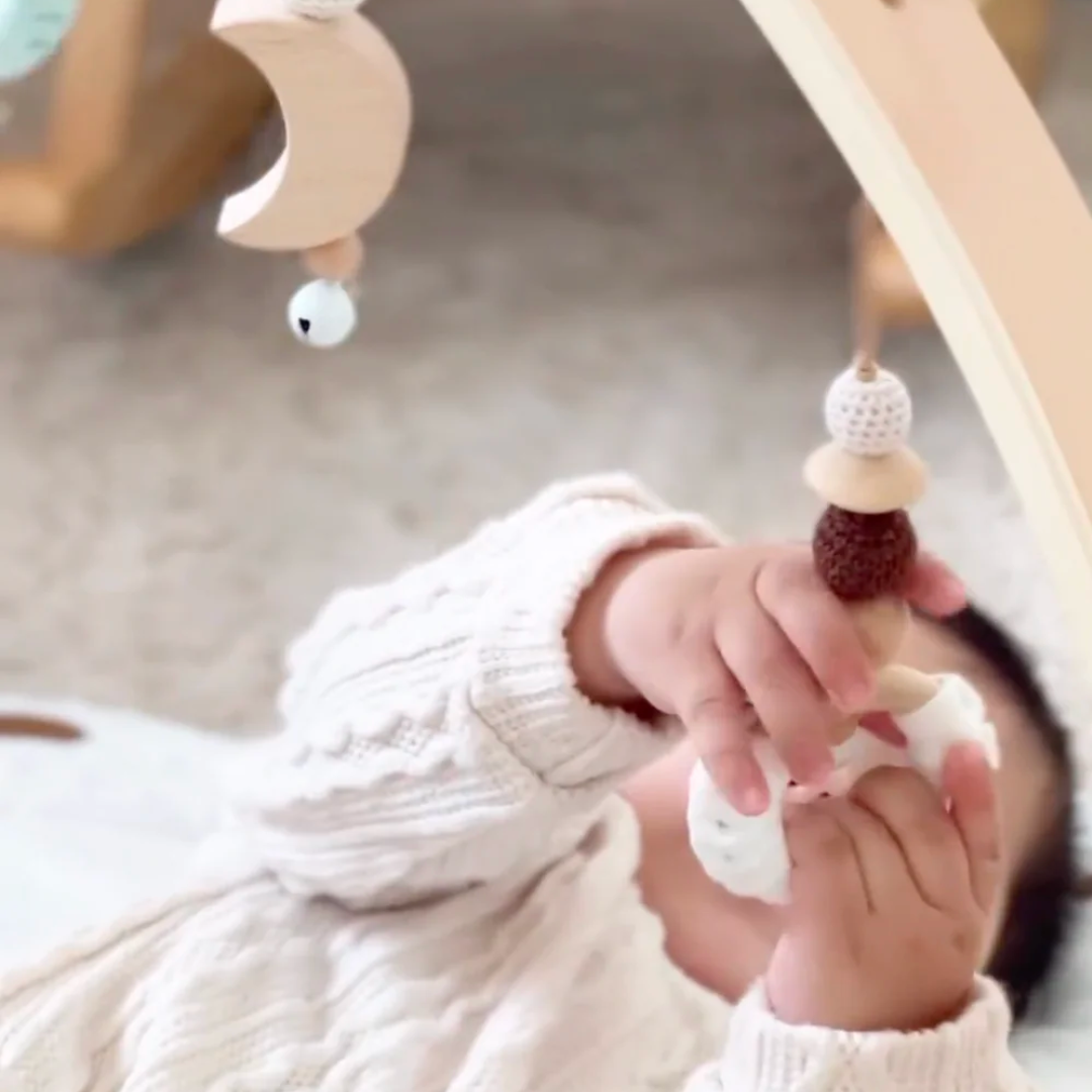 Unser durchdachter Spielbogen beschäftigt dein Baby stundenlang. Die bunten Anhängern, verschiedene Formen, Klänge und spannenden Texturen fördern nicht nur die Sinne sondern auch Entwicklung deines Kleinen.